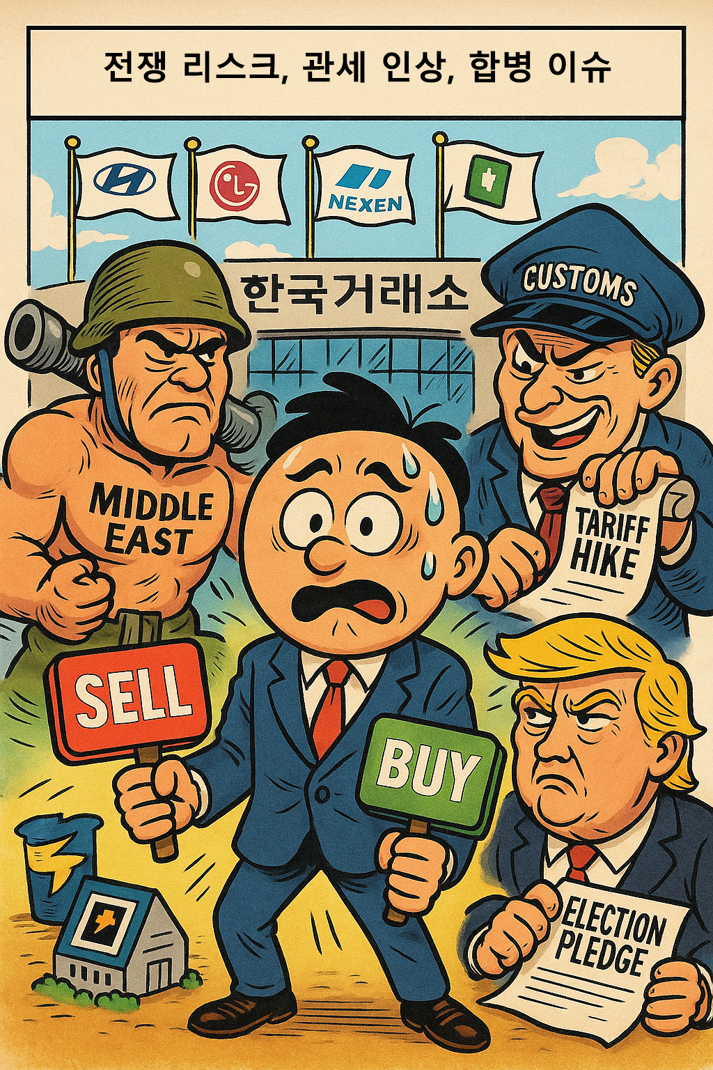 ์˜ค๋Š˜ ๊ตญ๋‚ด ์ฆ์‹œ๋Š” ์ด์Šค๋ผ์—˜-์ด๋ž€ ๊ฐˆ๋“ฑ ๊ฒฉํ™”์™€ ๋ฏธ๊ตญ์˜ ์ถ”๊ฐ€ ๊ด€์„ธ ๋ถ€๊ณผ ๋ฐœํ‘œ๋กœ ์กฐ์ •์„ ๋ฐ›์•˜์Šต๋‹ˆ๋‹ค. ์ฝ”์Šคํ”ผ๋Š” 0.8%, ์ฝ”์Šค๋‹ฅ์€ 2.6% ํ•˜๋ฝํ–ˆ์œผ๋‚˜ ์™ธ๊ตญ์ธ์€ ์ฝ”์Šคํ”ผ์—์„œ 700์–ต์›์„ ์ˆœ๋งค์ˆ˜ํ•˜๋ฉฐ ์„ ๋ณ„์  ํˆฌ์ž๋ฅผ ์ง€์†ํ–ˆ์Šต๋‹ˆ๋‹ค. ์ค‘๋™ ๊ฐˆ๋“ฑ์œผ๋กœ ๋ฐฉ์‚ฐ·ํ•ด์šด์ฃผ๊ฐ€ ๊ฐ•์„ธ๋ฅผ ๋ณด์ธ ๋ฐ˜๋ฉด, ๋ฐ”์ด์˜ค์™€ ๋ฐ˜๋„์ฒด๋Š” ์•ฝ์„ธ์˜€์Šต๋‹ˆ๋‹ค. ํŠนํžˆ ํŒŒ๋งˆ๋ฆฌ์„œ์น˜์˜ ์ธ์ ๋ถ„ํ•  ๋ฐœํ‘œ๋Š” ๊ธฐ์—…์ง€๋ฐฐ๊ตฌ์กฐ ์šฐ๋ ค๋ฅผ ๋ถ€๊ฐ์‹œ์ผฐ์œผ๋ฉฐ, ์ƒ๋ฒ• ๊ฐœ์ •์•ˆ ํ†ต๊ณผ ์ „ ์œ ์‚ฌ ์‚ฌ๋ก€๋“ค์ด ์ฆ๊ฐ€ํ•  ๊ฐ€๋Šฅ์„ฑ์ด ์žˆ์–ด ์ฃผ์˜๊ฐ€ ํ•„์š”ํ•ฉ๋‹ˆ๋‹ค. ๋‹จ๊ธฐ์ ์œผ๋กœ๋Š” ์ง€์ •ํ•™์  ๋ฆฌ์Šคํฌ์™€ ๊ด€์„ธ ์šฐ๋ ค๊ฐ€ ๋ณ€์ˆ˜๋กœ ์ž‘์šฉํ•˜๊ฒ ์œผ๋‚˜, ์™ธ๊ตญ์ธ์˜ ๊พธ์ค€ํ•œ ๋งค์ˆ˜์„ธ์™€ ๊ฐœ์ธ์˜ ์ €์  ๋งค์ˆ˜ ์ฐธ์—ฌ๋Š” ๊ธ์ •์  ์š”์ธ์œผ๋กœ ํŒ๋‹จ๋ฉ๋‹ˆ๋‹ค.