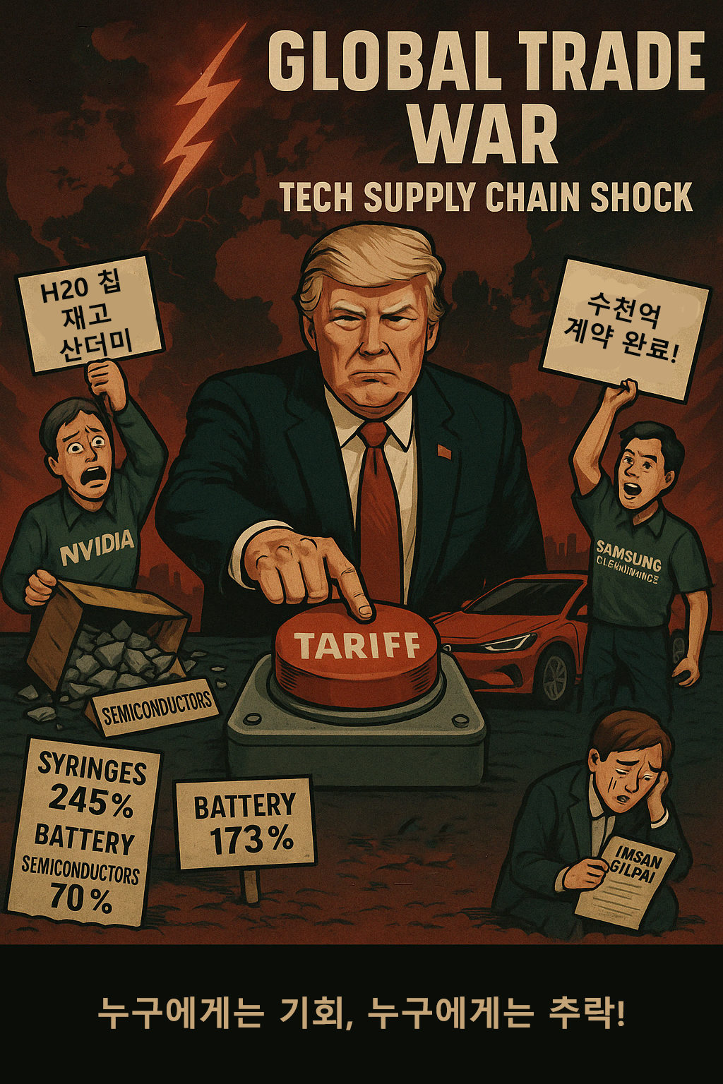 3. ๋ฏธ๊ตญ์˜ ๊ณ ๊ด€์„ธ ํญํƒ„…๋ฐ˜๋„์ฒด 70%, ์ฃผ์‚ฌ๊ธฐ 245%