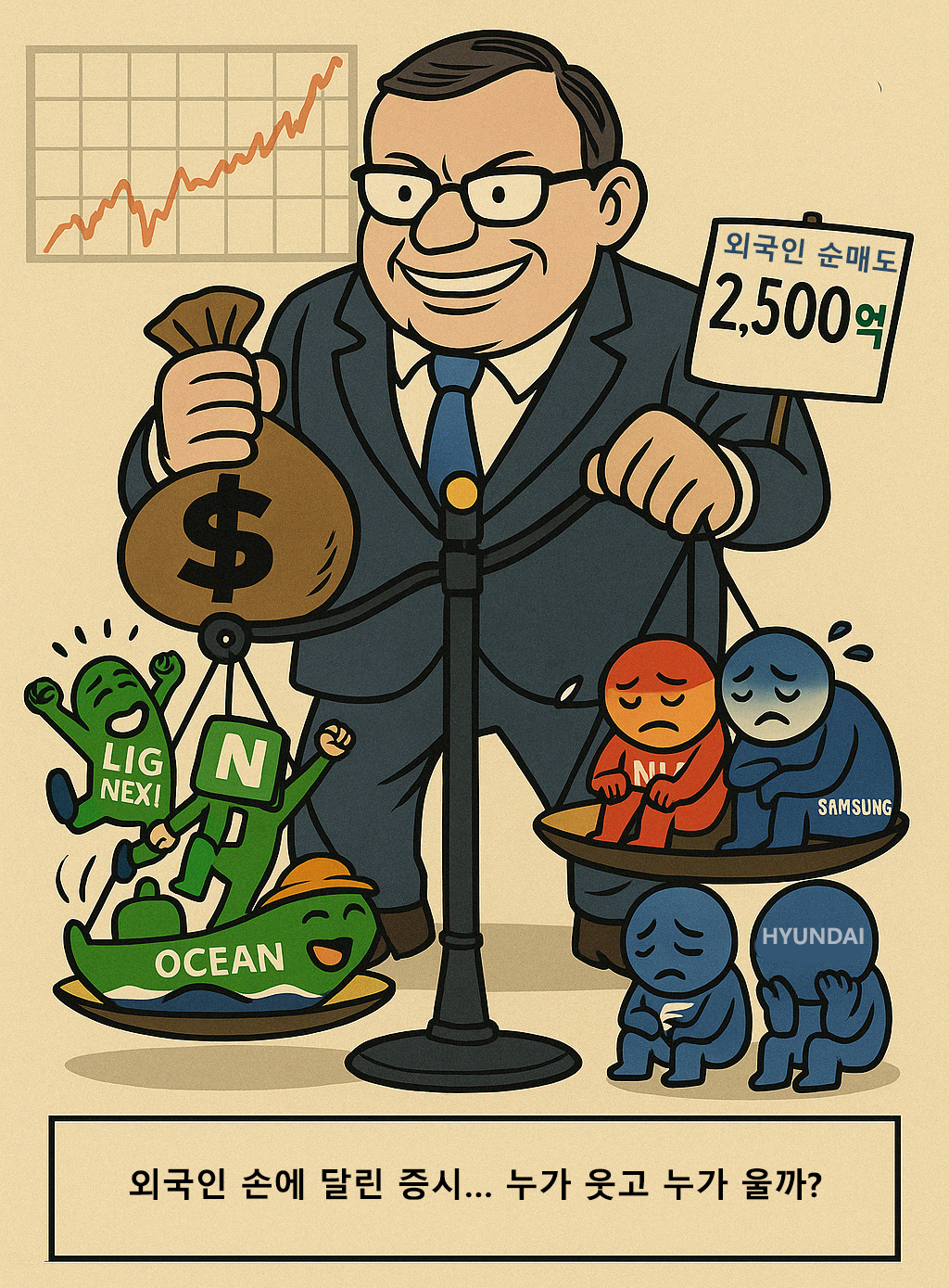 3,500% ๊ด์ธ ๋ถ๊ณผ LS์ผ๋ ์ค์ ํํ, ํ๋์ผ๋ ์ค์ ์ ์ํธํ๋ ์์ฃผ๊ฐ์ ์ฐ๋ ค ํ๋ฏธ๋ฐ๋์ฒด-ํ์ด๋์ค ๊ฐ ๊ฐ๋ฑ & ๋ฐ์ฃผ ๊ธฐ๋๊ฐ ๋ค์ฌํฌ์์ฆ๊ถ. ์ํผ๊ฐ๋ฏธ ์ง๋ถ๋งค๋ → ๊ฒฝ์๊ถ ๊ธฐ๋๊ฐ ์๋ฉธ → -15% ๊ธ๋ฝ |